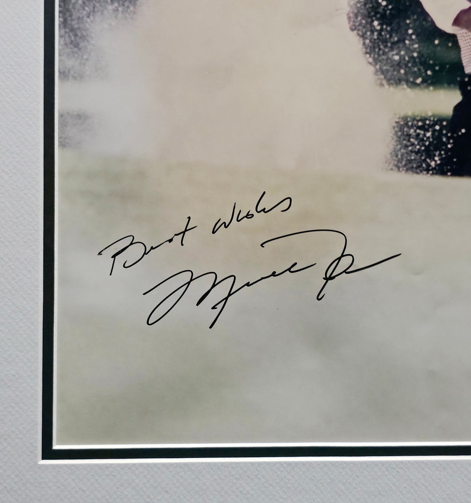 This signed photograph captures the essence of Michael Jordan, the six-time NBA Champion and five-time NBA MVP, whose influence on the game of basketball and global pop culture is unmatched. Whether you're commemorating the Chicago Bulls’ dynasty years of the 1990s or simply honoring a true sports icon, this keepsake is a meaningful addition to your collection.