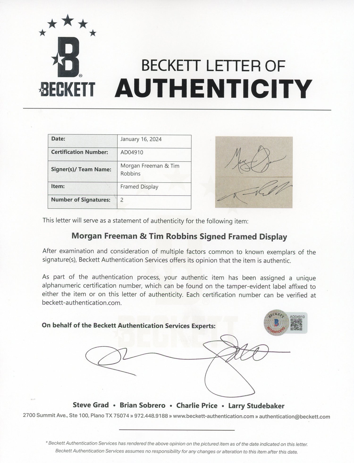 • Hand-Signed by Morgan Freeman & Tim Robbins – Two legendary actors from The Shawshank Redemption.