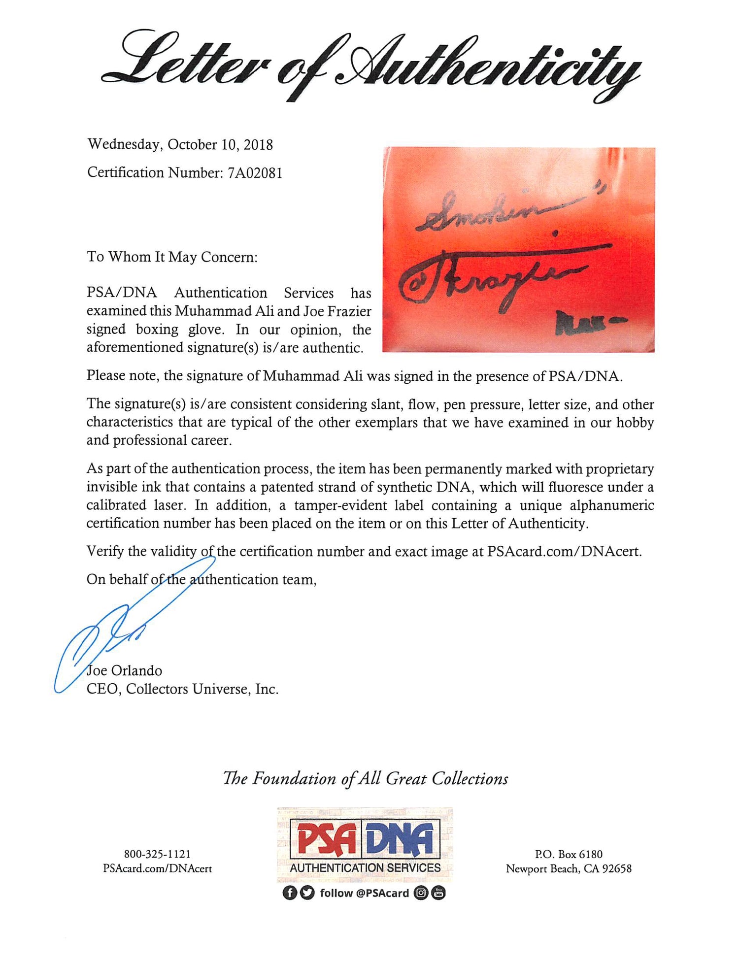 This one-of-a-kind signed glove is a timeless tribute to two of the sport’s greatest champions. Authenticity can be verified directly through the Professional Sports Authenticator (PSA/DNA) website. Don’t miss your chance to add this legendary piece to your collection!