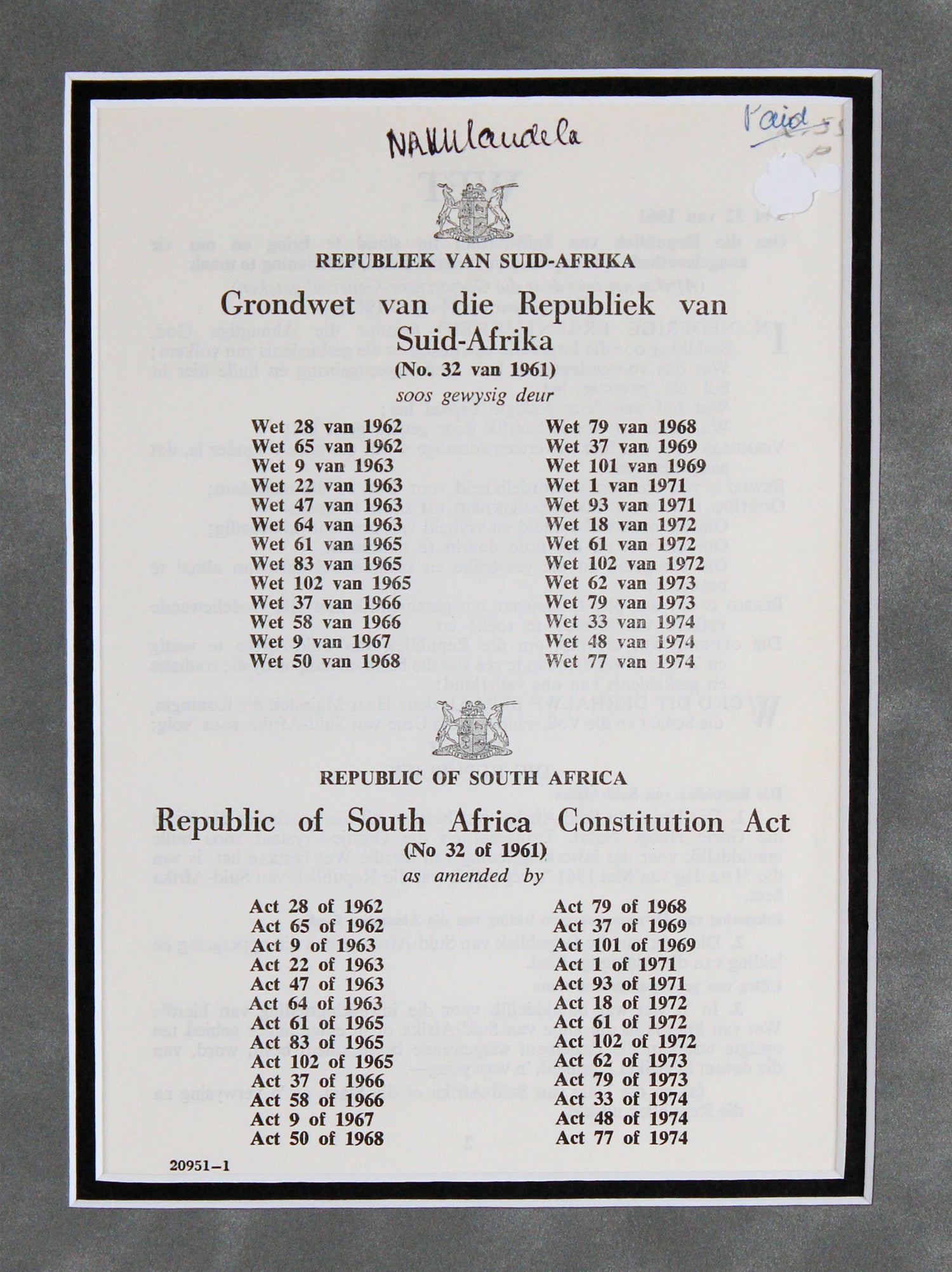 - Features a genuine 5.5x8 page from the South African Constitution Booklet
