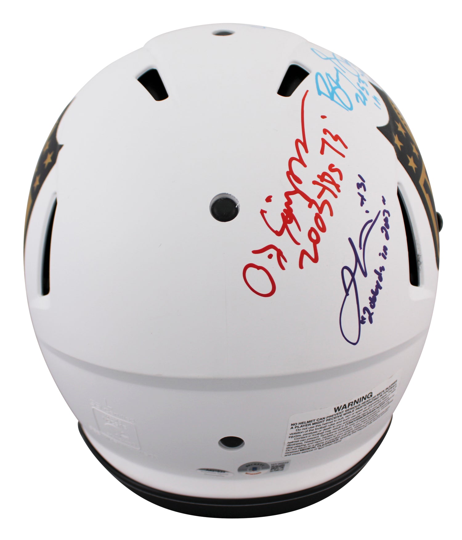 This Autographed Authentic Full-Size Speed Proline Helmet is a must-have for serious collectors and football history enthusiasts. Personally signed by some of the greatest running backs in NFL history, this exclusive piece features the inscription of elite 2,000-yard rushers, including Adrian Peterson, Chris Johnson, Derrick Henry, Eric Dickerson, Barry Sanders, Jamal Lewis, Terrell Davis, O.J. Simpson, and Saquon Barkley.