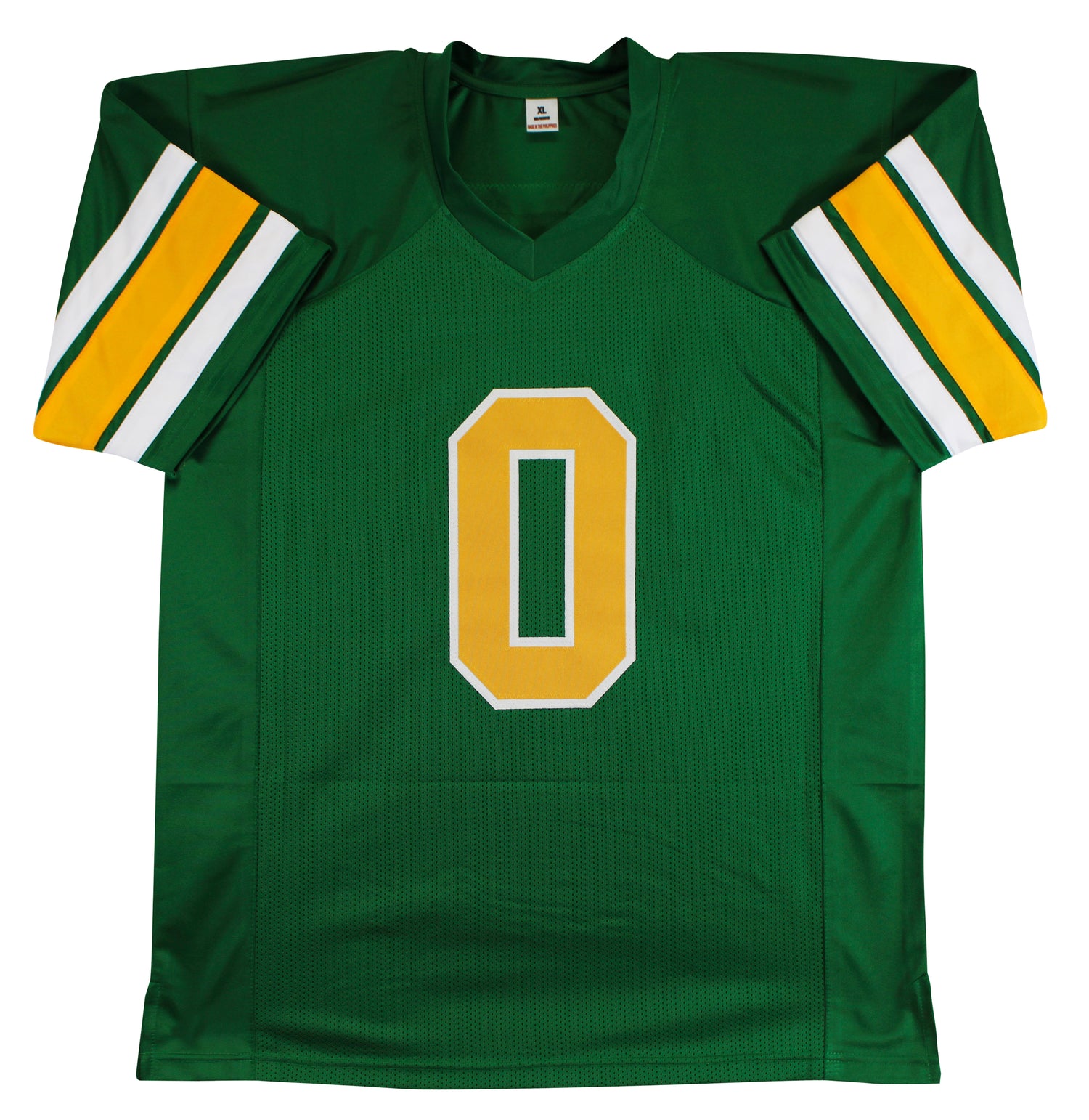 Own a true piece of Oregon Ducks football history with this Autographed Green Pro Style Jersey personally signed by Bucky Irving, the standout running back known for electrifying plays and fierce competitiveness on the field. Whether you're a die-hard Ducks fan or a dedicated memorabilia collector, this signed jersey makes an incredible addition to your collection. This is a custom-stitched, non-branded, Green Pro Style jersey in X-Large size, crafted to showcase proudly in any sports room, man cave, or memorabilia display. This authentic signature was obtained during a private signing session with Bucky Irving, and the item is part of the Beckett Witnessed Protection Program—ensuring unquestionable reliability and authenticity.