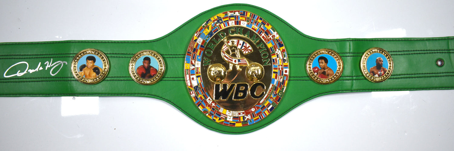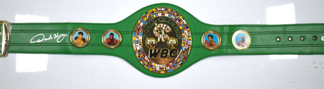Own a piece of boxing history with this hand-signed WBC Replica Belt autographed by Oscar De La Hoya. A true must-have for collectors and fight fans, this belt represents the legacy of one of boxing’s greatest champions. Whether you’re a dedicated fan of De La Hoya or a memorabilia collector, this item makes a stunning addition to any collection.
