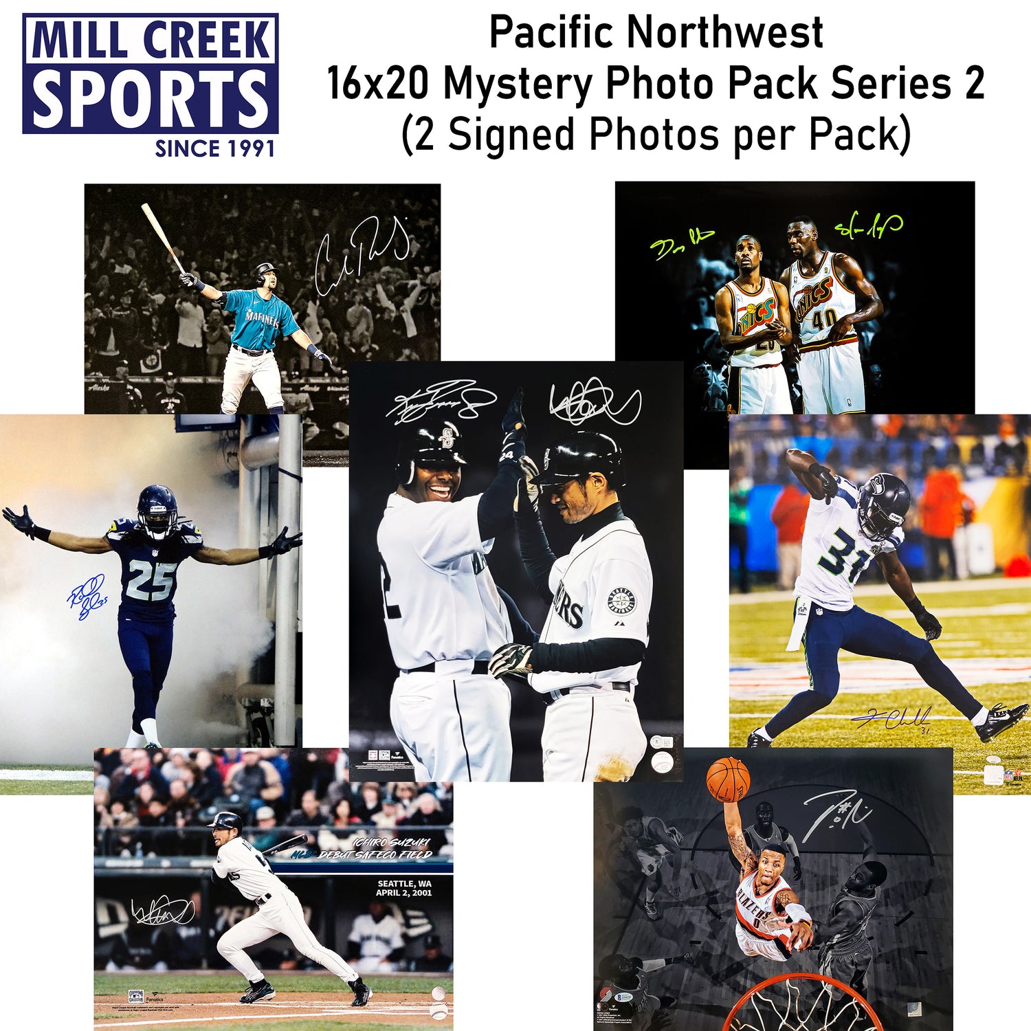 Introducing the Pacific Northwest Autographed 16x20 Mystery Photo Pack – Series 2 from Mill Creek Sports! This exclusive mystery pack features two randomly inserted autographed 16x20 photos from legendary Pacific Northwest athletes. Guaranteed: At least one photo will be signed by a Hall of Famer, World Champion, All-Star, or Award Winner.
