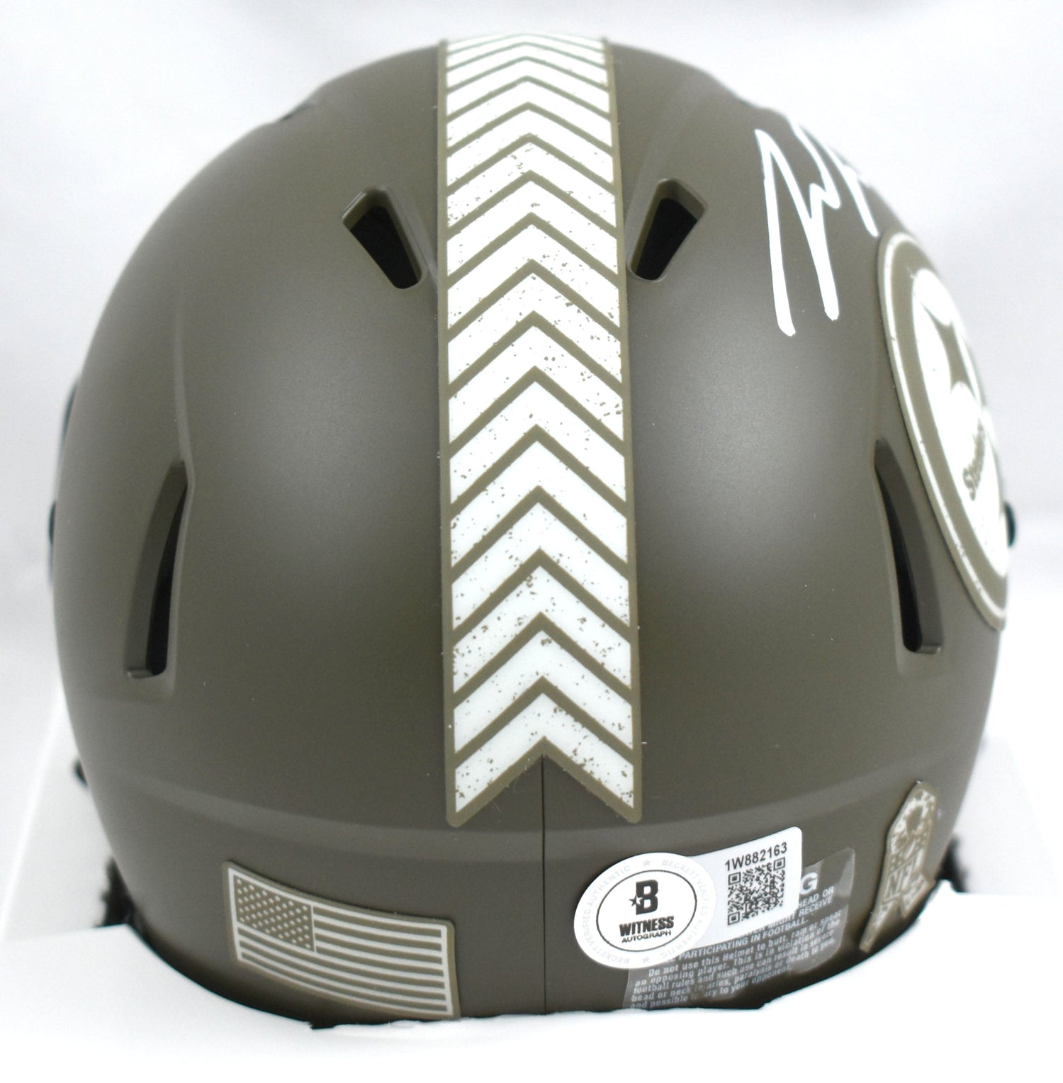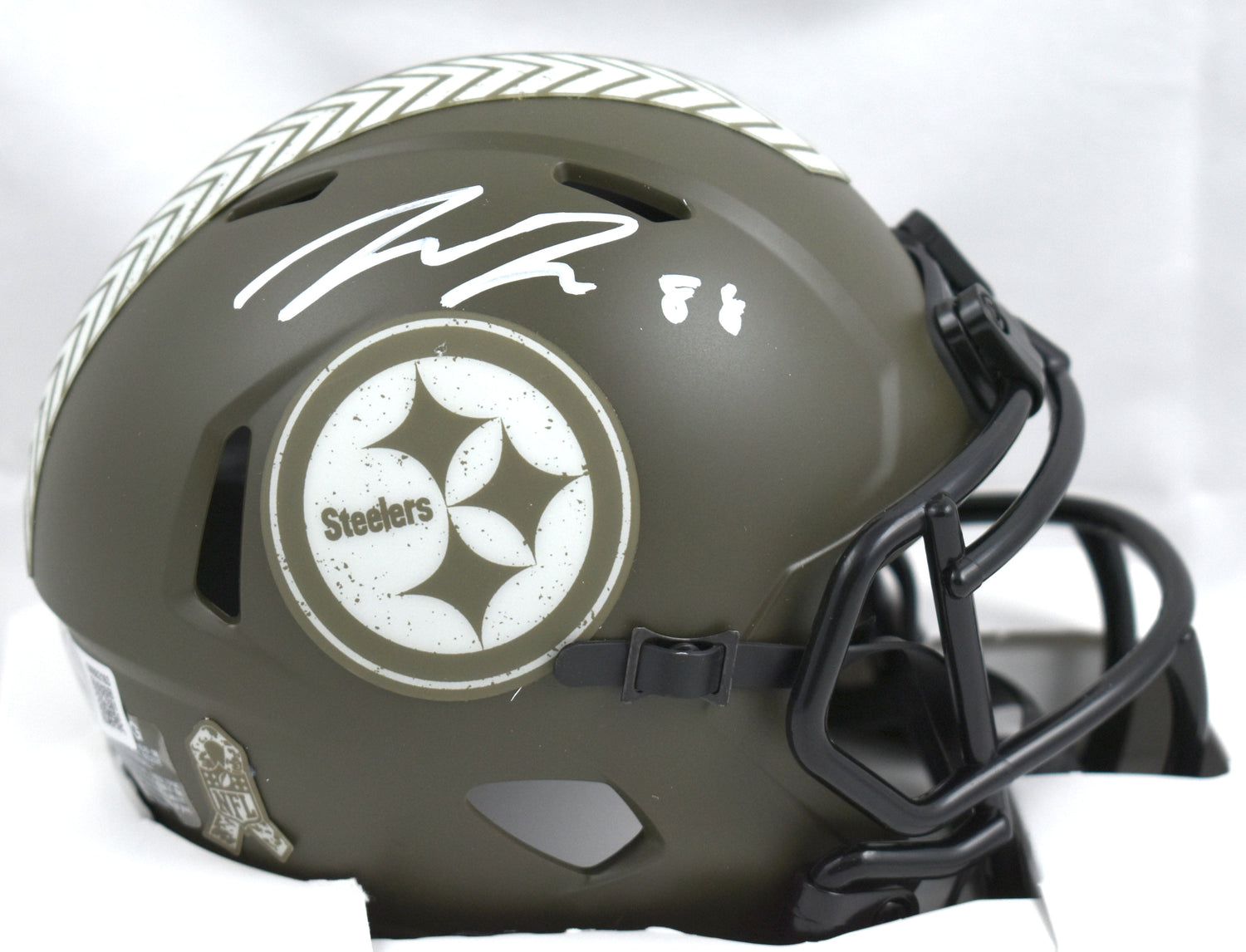 Own a piece of Pittsburgh Steelers history with this hand-signed Pat Freiermuth Salute to Service Speed Mini Helmet by Riddell. This collectible mini helmet is a must-have for dedicated Steelers fans and memorabilia collectors, celebrating both the team and the NFL’s Salute to Service initiative.