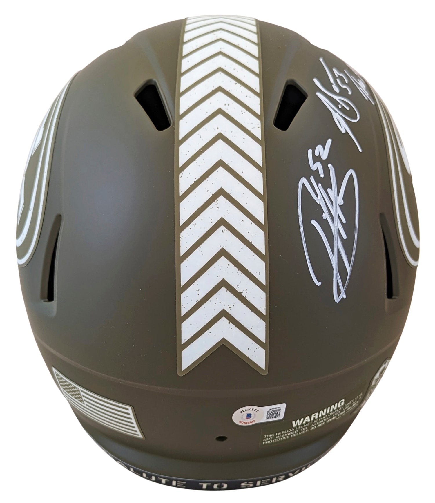 Honor two of the San Francisco 49ers’ legendary linebackers with this Autographed Alternate Salute To Service Riddell Full Size Speed Replica Helmet, personally signed by Patrick Willis and Navorro Bowman. Featuring the exclusive inscription "The Steam Rollers", this piece pays tribute to the feared defensive duo that dominated the NFL during the 2010s. A must-have collectible, this helmet showcases the 49ers’ deep legacy of elite defense and commitment to excellence both on and off the field. This unique piece is authenticated and certified by Beckett Authentication Services (BAS), providing collectors with peace of mind and long-term value.