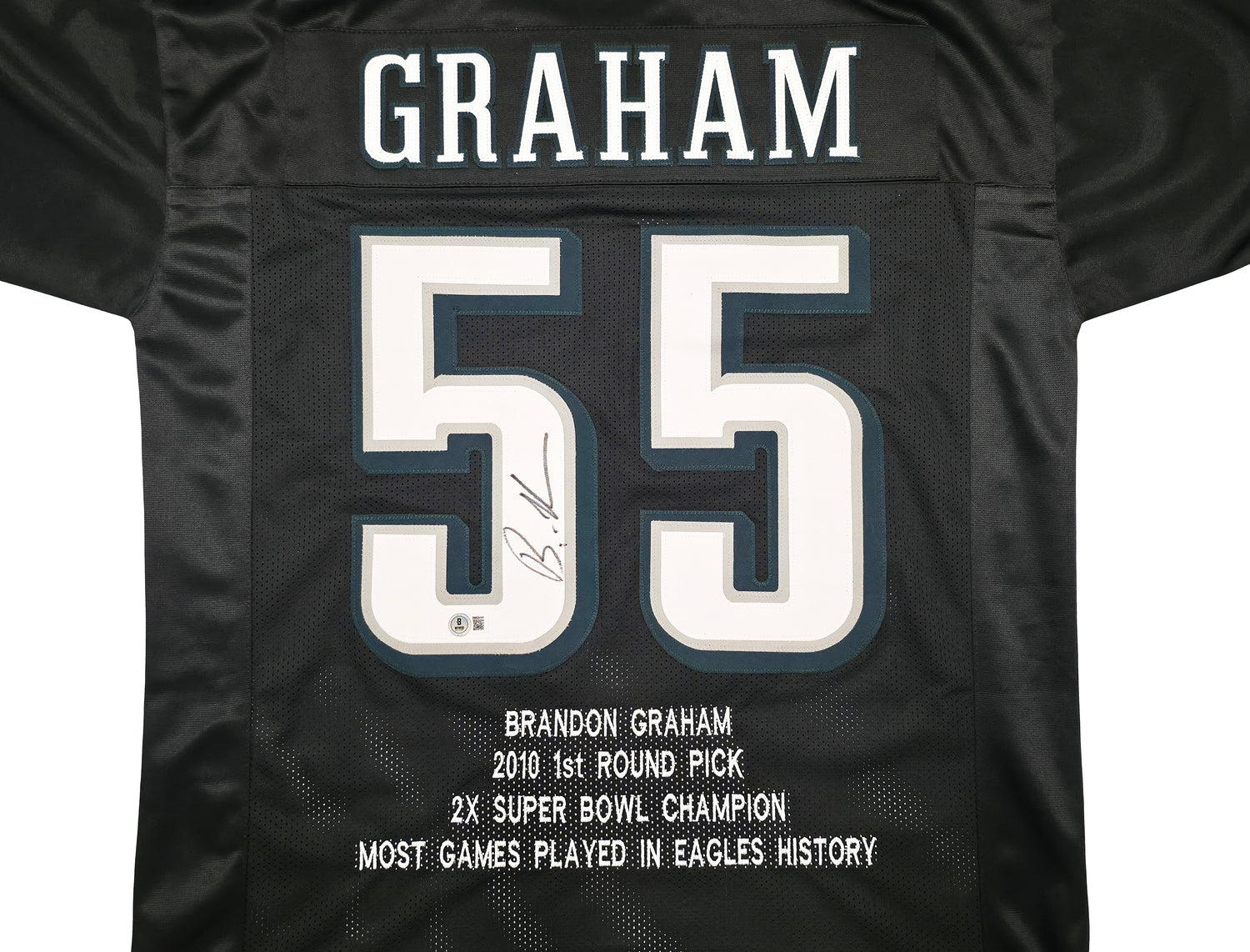 Philadelphia Eagles Brandon Graham Autographed Black Super Bowl Stats Jersey Beckett BAS Witness Stock #239891