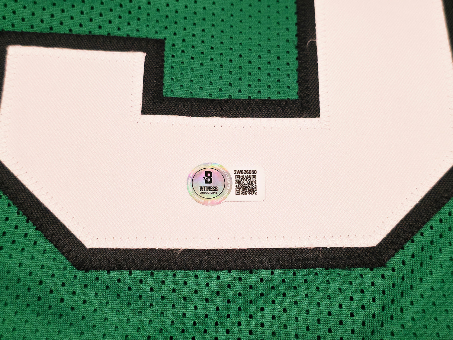 This is a custom XL jersey (non-branded) featuring stitched name and numbers in classic Kelly Green, paying tribute to the Eagles’ legacy look. Its bold design not only stands out in any collection but also honors a pivotal moment in Philadelphia sports history. Authenticated for your peace of mind, this item has been witnessed and certified by Beckett Authentication Services (BAS), featuring their tamper-proof witness hologram.