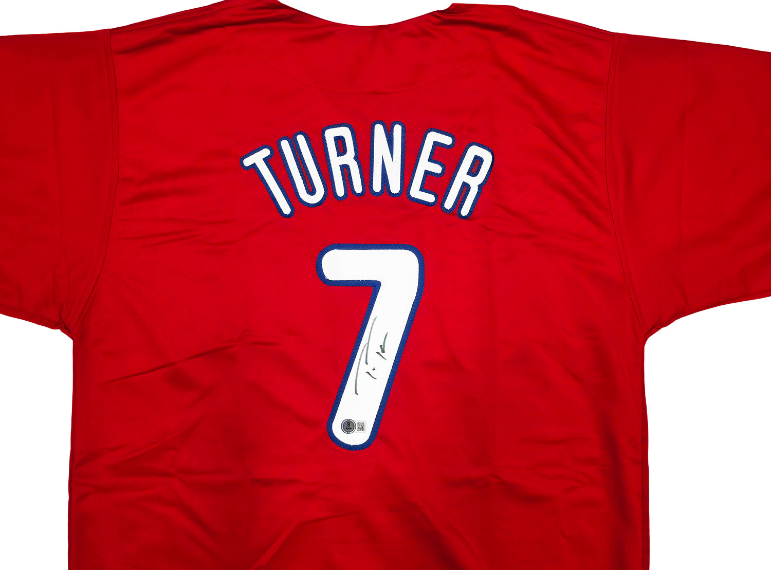 Philadelphia Phillies Trea Turner Autographed Red Jersey Beckett BAS Witness Stock #253488