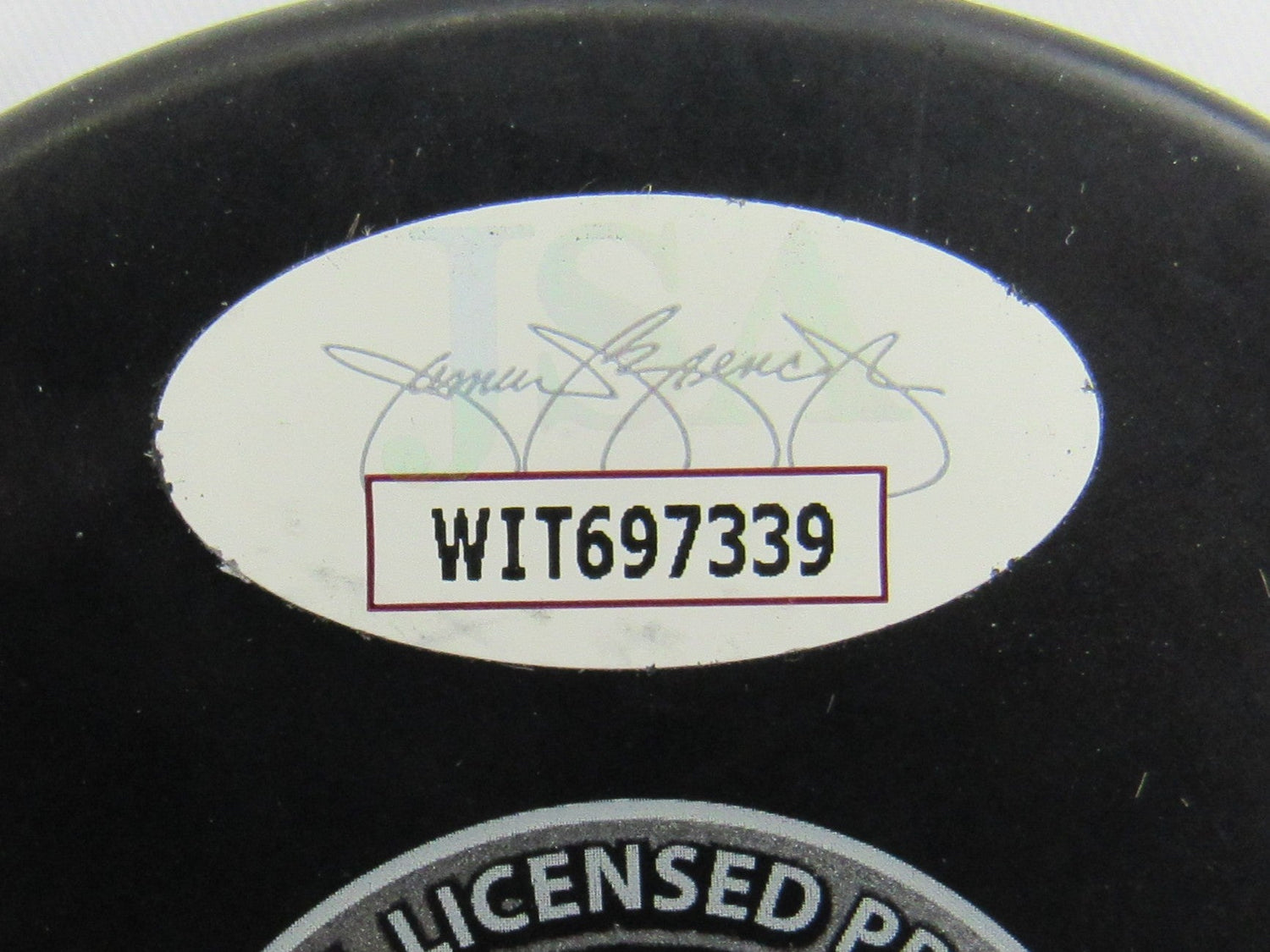 Celebrate the legacy of a true NHL legend with this Grant Fuhr Signed Autograph Edmonton Oilers Logo Hockey Puck. Hand-signed by Hall of Fame goaltender Grant Fuhr, this collectible puck features an authentic signature and unique inscription, making it a standout addition to any sports memorabilia collection. Certified by JSA (Witnessed Protection Program), this autographed puck comes with the JSA certification number WIT697339, ensuring authenticity and peace of mind for collectors.