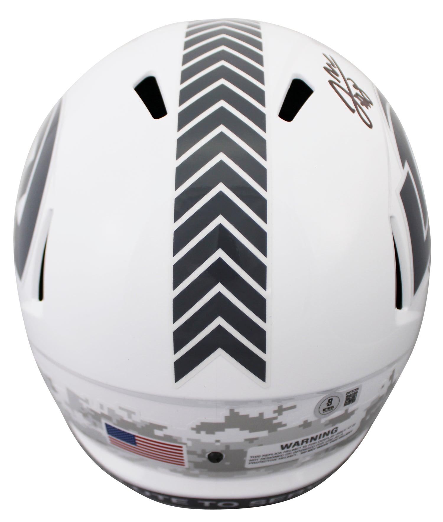 Own a piece of Los Angeles Rams history with this Autographed Alternate 2024 Salute to Service III Riddell Full-Size Speed Rep Helmet, personally signed by standout player Jared Verse. This high-quality collectible comes with a UV-mirrored acrylic display case, making it a perfect centerpiece for any sports memorabilia collection.