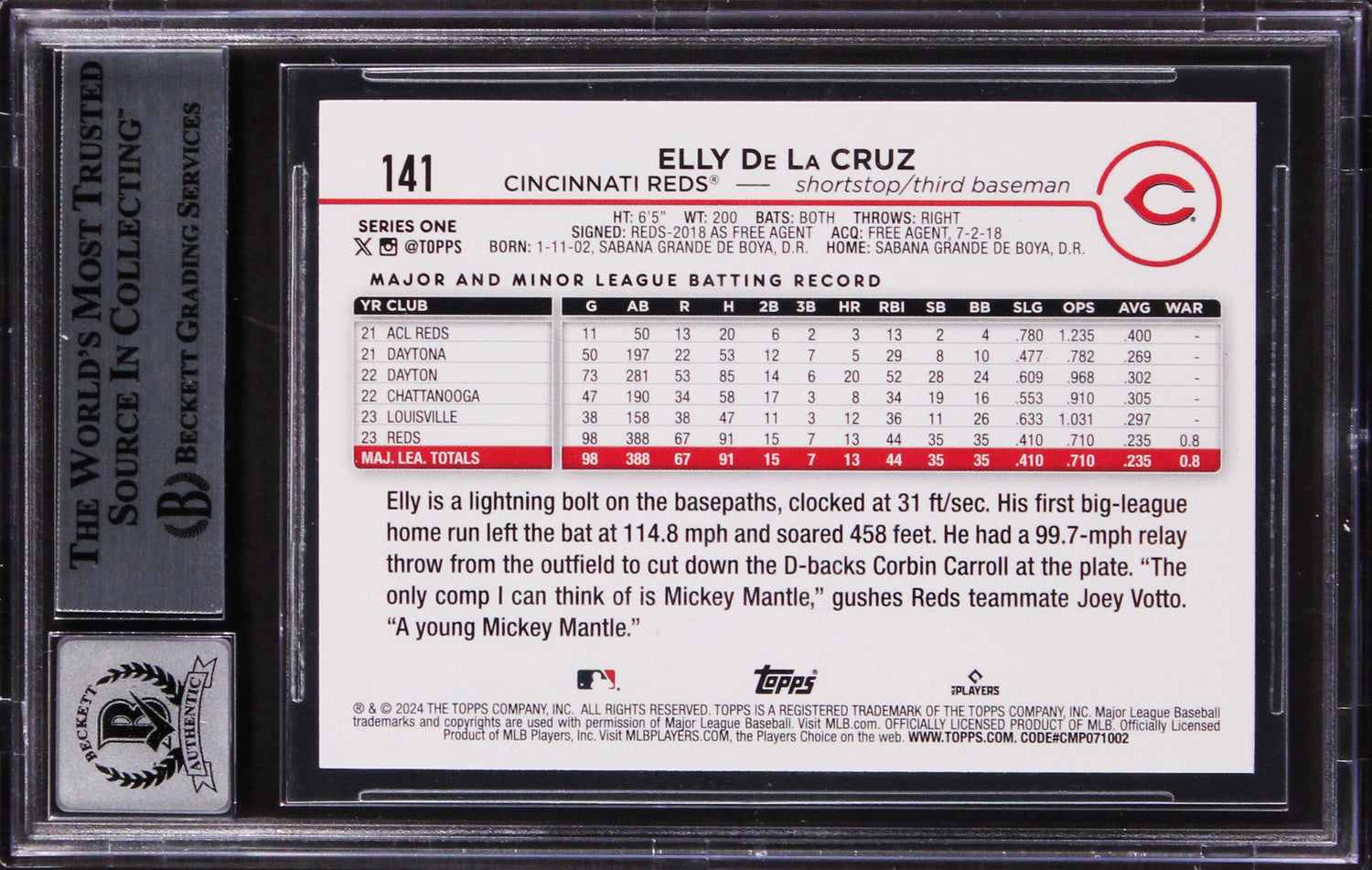 Reds Elly De La Cruz Signed 2024 Topps #141 Rookie Card Auto 10! BAS Slabbed