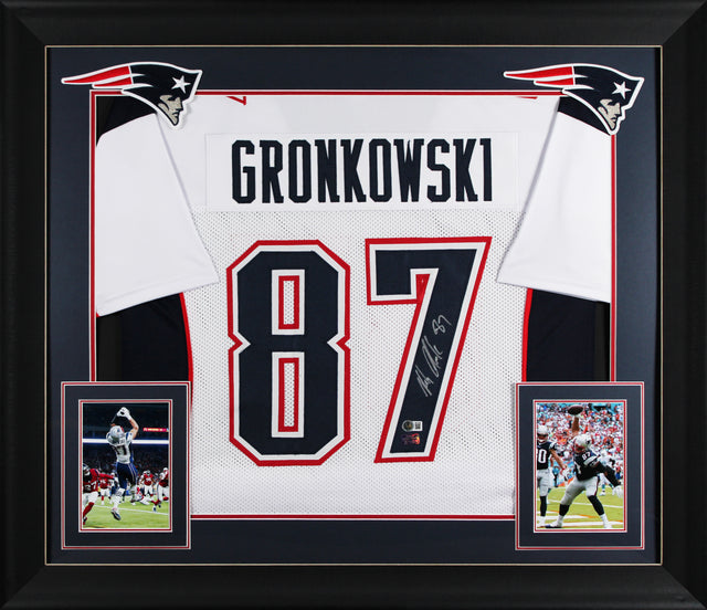 Bring a piece of NFL greatness into your collection with this Rob Gronkowski Autographed White Pro Style Framed Jersey, signed by the legendary tight end himself during a private signing session. Known for his iconic career with the New England Patriots—including four Super Bowl championships and a reputation as one of the most dominant players at his position—this signed memorabilia is a premium display tribute to a football legend. Professionally framed and authenticated, it's a must-have for serious fans and collectors of sports history.