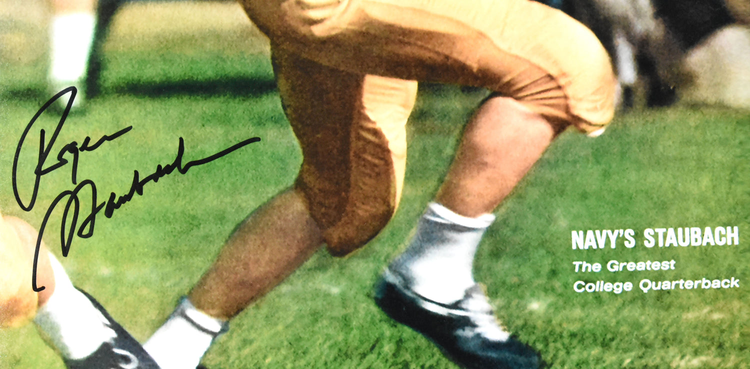 - Hand-autographed 16x20 vertical photo of Roger Staubach in his Navy Midshipmen uniform