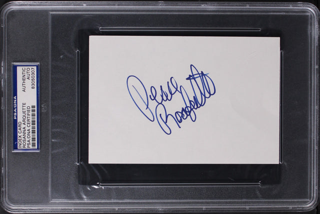 Own a piece of Hollywood history with this Autographed 4x6 Index Card, personally signed by Rosanna Arquette, the acclaimed actress from Pulp Fiction. This rare collectible is 100% authentic and has been professionally slabbed and authenticated by PSA/DNA, a trusted name in memorabilia verification.
