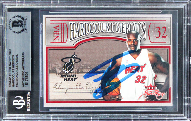 Own a piece of basketball history with this Autographed 2004 Fleer Sweet Sigs Hardcourt Heroics #13 Card, personally signed by NBA legend Shaquille O'Neal during his iconic tenure with the Miami Heat. This collector’s item not only features the dominant center's authentic signature, but also represents a pivotal era in his Hall of Fame career—when O'Neal helped lead the Heat to their first NBA Championship in 2006. Professionally authenticated and slabbed by Beckett Authentication Services (BAS), this card is a trusted and valuable addition to any basketball memorabilia collection.