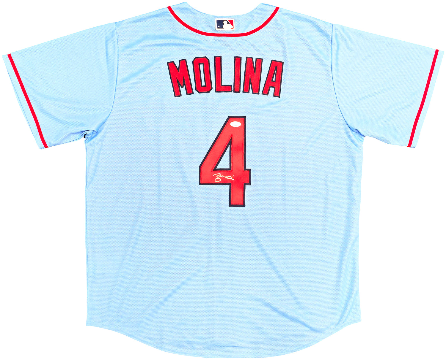 St. Louis Cardinals Yadier Molina Autographed Light Blue Nike Jersey Size XL JSA Stock #236166 is backordered and will ship as soon as it is back in stock.