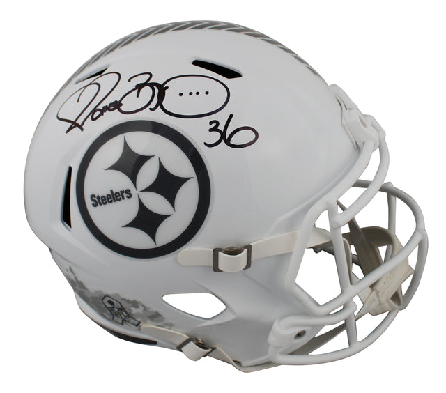 Own a piece of Pittsburgh Steelers history with this Autographed Alternate 2024 Salute to Service III Riddell Full-Size Speed Replica Helmet, personally signed by legendary running back Jerome Bettis. A must-have for devoted Steelers fans and serious sports collectors, this stunning helmet honors both the team's rich legacy and the NFL’s dedication to the military through the Salute to Service initiative.