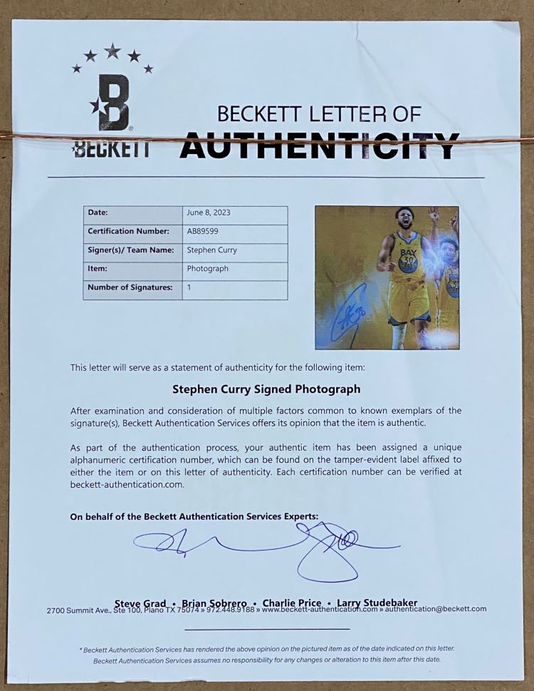 This Stephen Curry autographed photo is more than just memorabilia—it's a symbol of a generational talent who revolutionized the game with his three-point shooting. Whether you're an investor, collector, or devoted fan, this framed masterpiece will be a standout feature in your sports collection. Secure yours today!