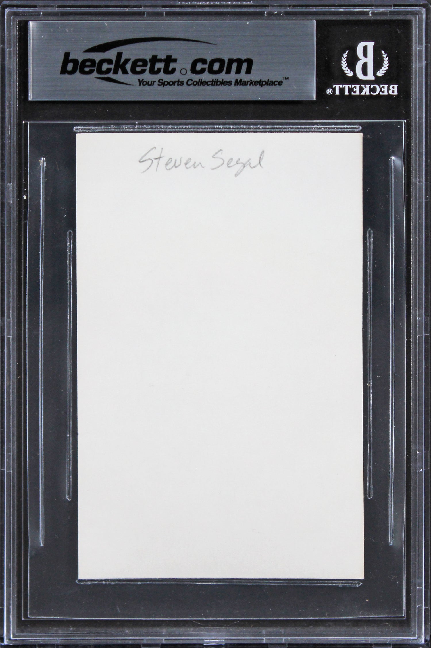 Steven Seagal Under Siege Authentic Signed 3x5 Index Card w/ Black Sig BAS Slab