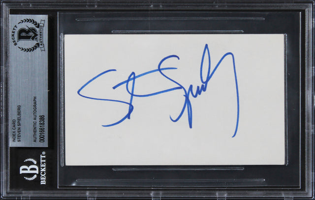 This rare and highly collectible Autographed 3x5 Index Card personally signed by Steven Spielberg, famed director of Schindler's List, is a must-have for any serious pop culture or film memorabilia collector. A true piece of cinematic history, this signed card pays tribute to one of the most influential filmmakers of all time and the powerful legacy of his Oscar-winning masterpiece, Schindler’s List. Professionally authenticated and encapsulated, it offers lifelong value and authenticity you can trust.