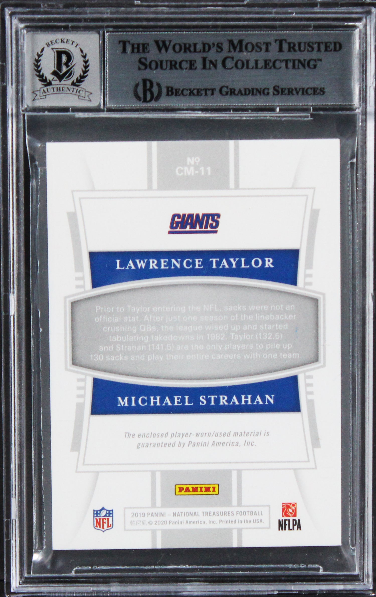 Taylor & Strahan Signed 2019 Nat'l Treasures NFL GCM #11 Card Auto 10! BAS Slab