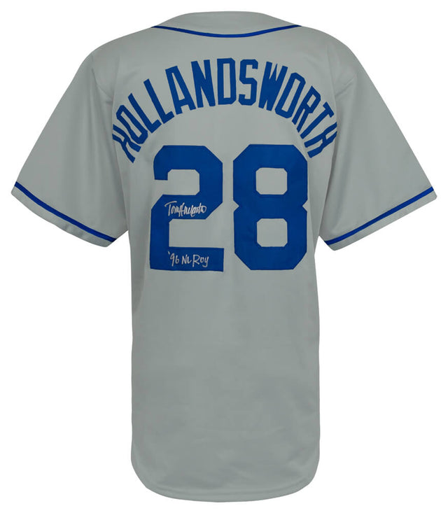 Elevate your sports memorabilia collection with this Todd Hollandsworth signed grey custom baseball jersey, featuring a special '96 NL ROY' inscription commemorating his achievement as the 1996 National League Rookie of the Year. This jersey is a must-have for baseball enthusiasts and collectors who appreciate the legacy of standout rookies in MLB history.