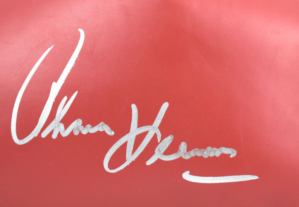 Own a piece of boxing history with this Tommy Hearns Autographed Red Everlast Boxing Glove (Right-Handed), signed in silver ink. This collectible glove is a must-have for boxing enthusiasts and memorabilia collectors alike.