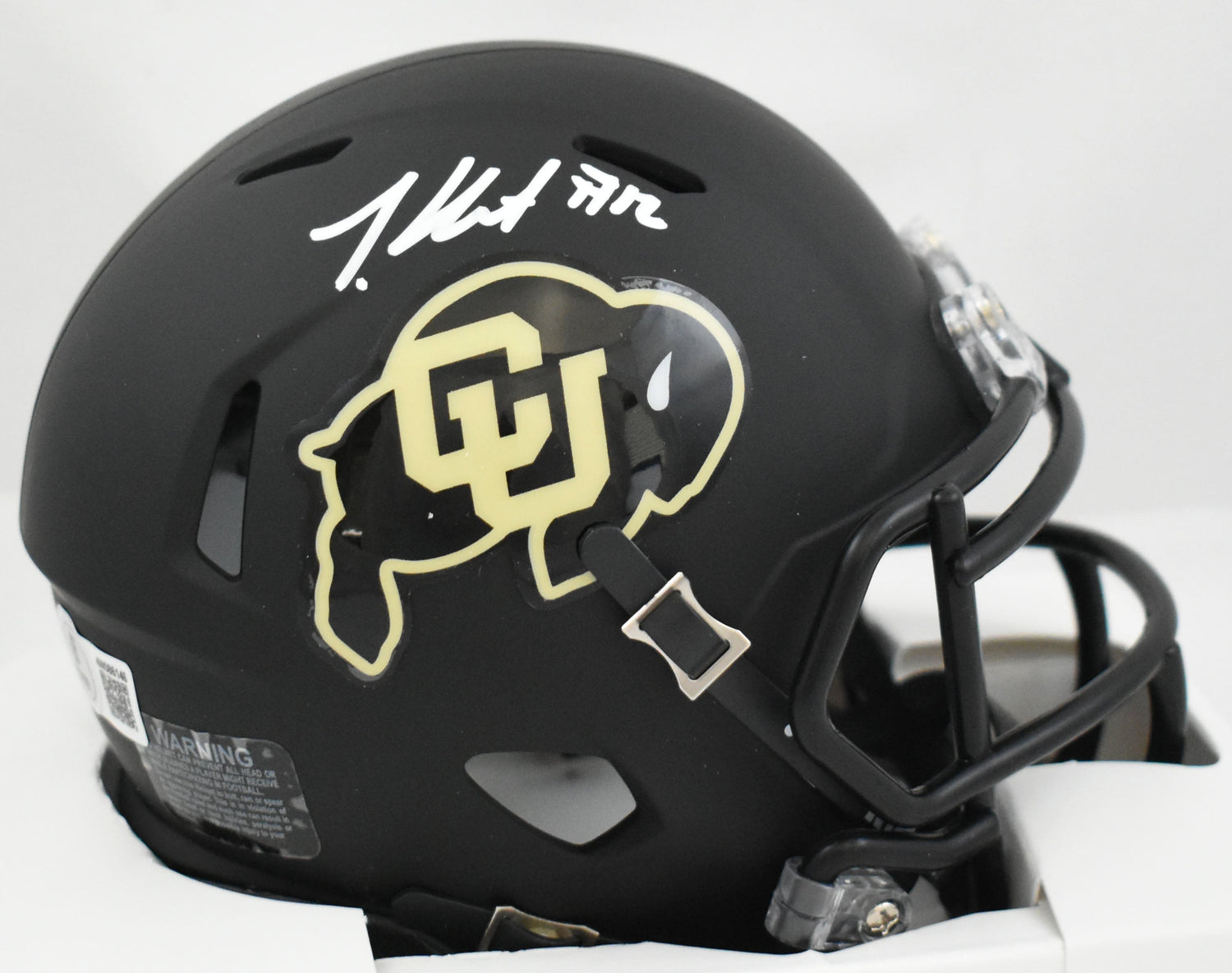 Own a standout piece of college football history with this Travis Hunter autographed Riddell Matte Black Speed Mini Helmet, commemorating his rising stardom with the Colorado Buffaloes. A two-way phenom and part of head coach Deion Sanders' game-changing 2023 roster, Hunter quickly became one of the most electrifying players in college football. This helmet is more than just a collectible—it's a tribute to a new era in Buffaloes football. Every helmet is authenticated by Beckett Witnessed Authentication, including a unique numbered hologram and scannable QR code that allows you to verify the signing details on the Beckett website. Whether it was signed at a private session or public appearance, each autograph is 100% genuine and backed by industry-standard verification.