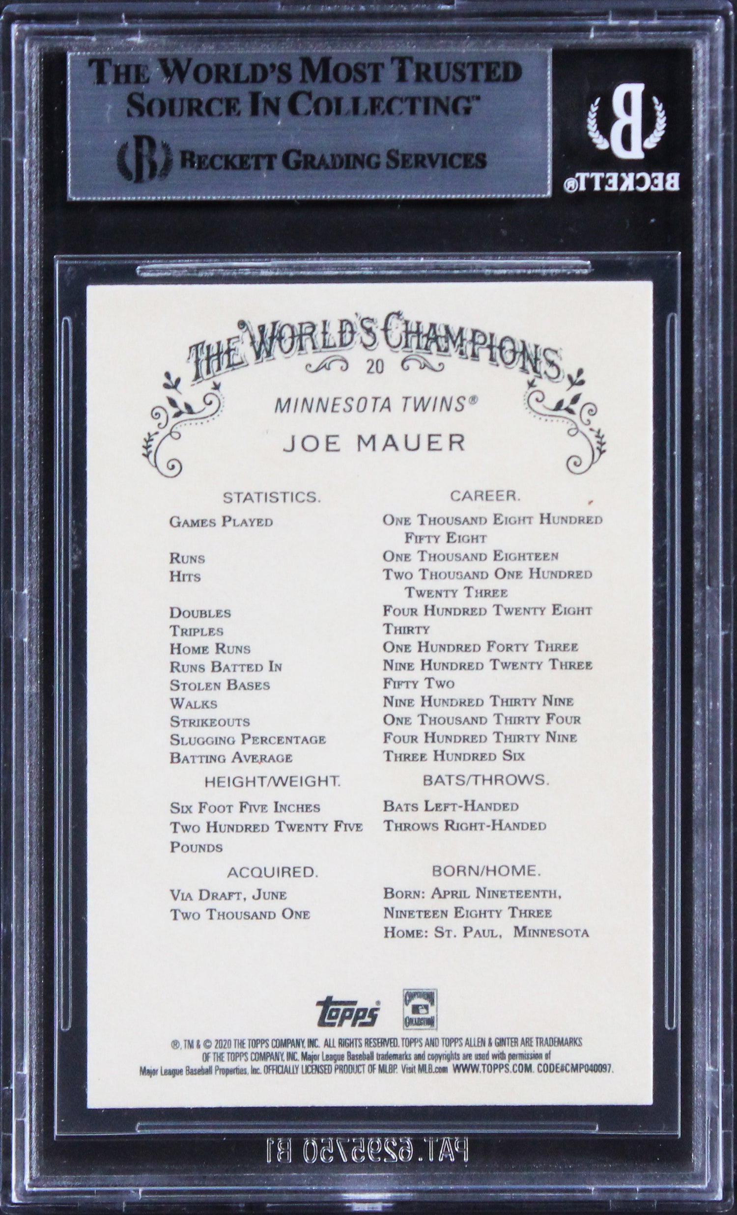 Twins Joe Mauer Authentic Signed 2020 Topps Allen & Ginter #29 Card BAS Slabbed