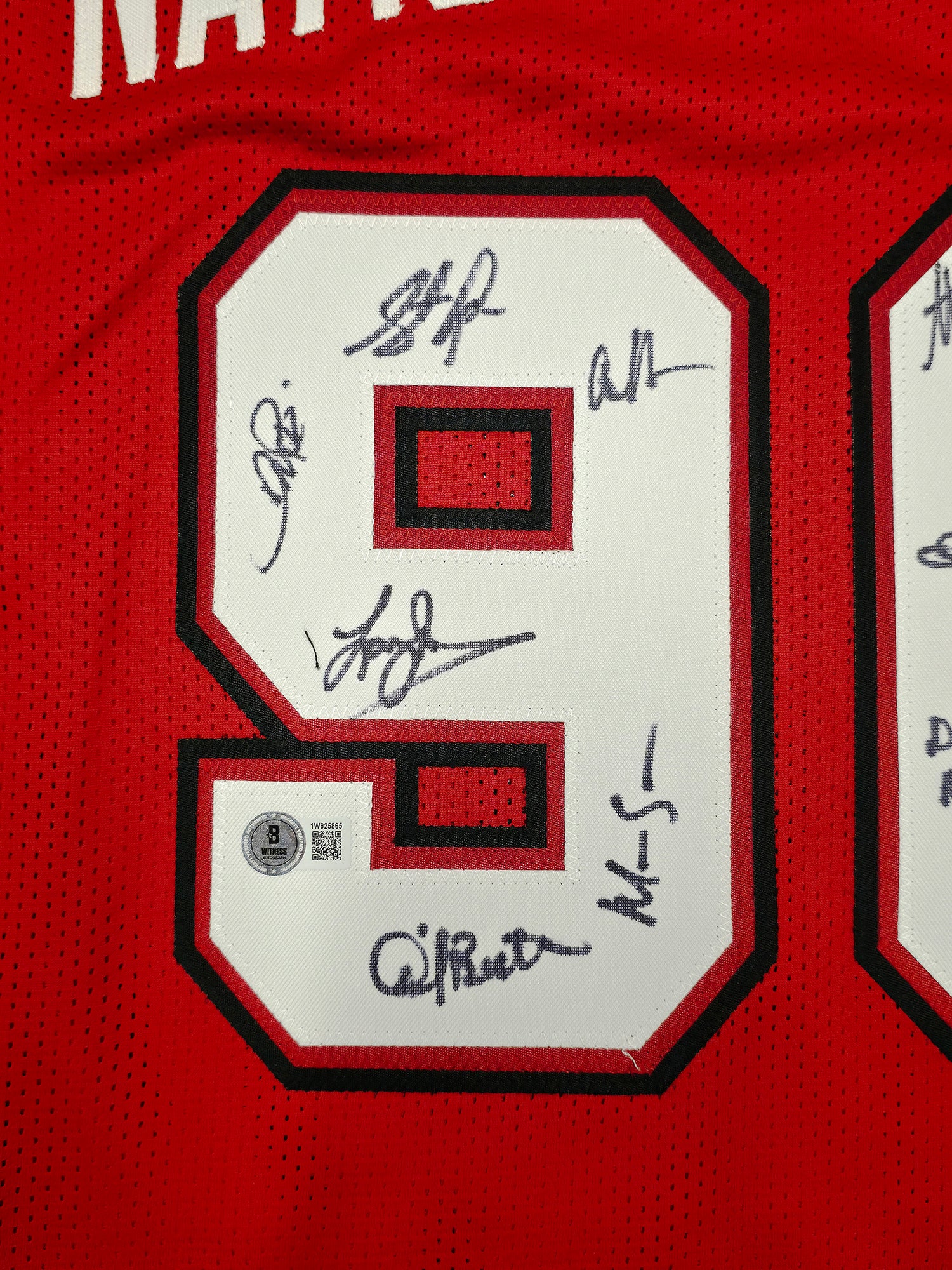 UNLV Runnin Rebels 1990 NCAA Champions Autographed Red Jersey With 13 Signatures Including Larry Johnson Beckett BAS Witness Stock #252797