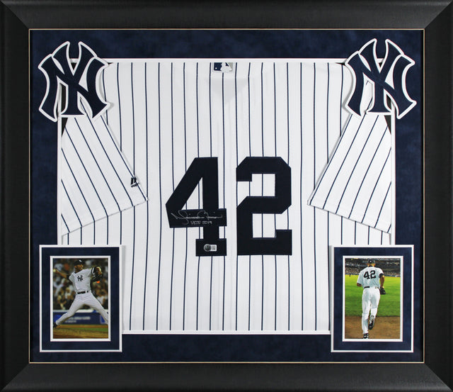 Yankees Mariano Rivera "HOF" Signed White Pinstripe Majestic Framed Jersey BAS W