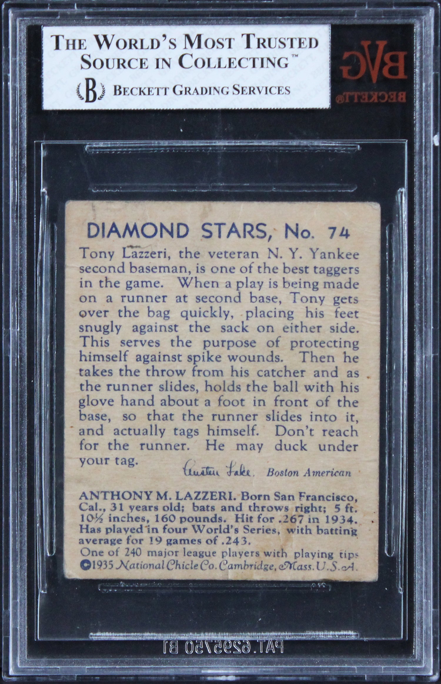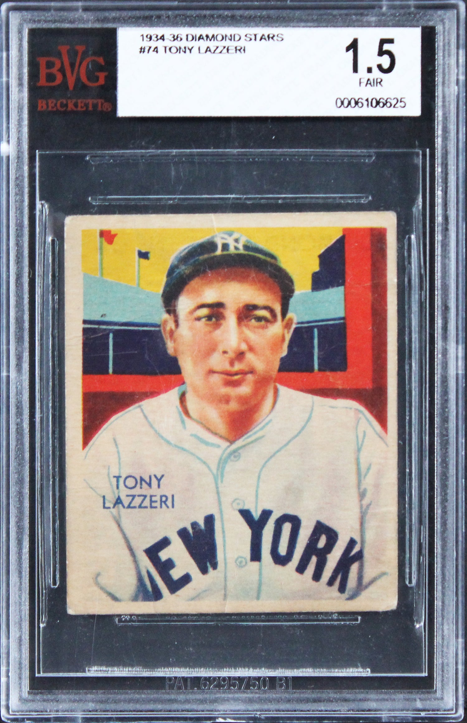 Yankees Tony Lazzeri 1934 Diamond Stars #74 Card Graded FR-1.5 BGS Slabbed