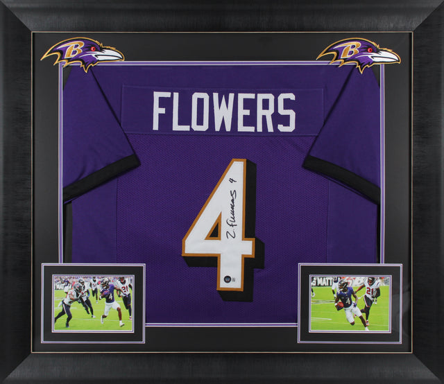 Zay Flowers Authentic Signed Purple Pro Style Framed Jersey Autographed BAS 1