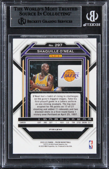 Lakers Shaquille O'Neal Signed 2022 Panini Prizm Silver #297 Card BAS Slabbed