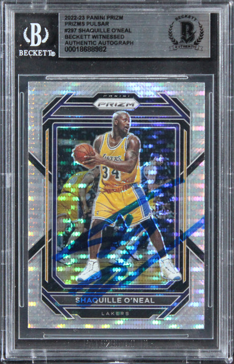 Lakers Shaquille O'Neal Signed 2022 Panini Prizm Pulsar #297 Card BAS Slabbed