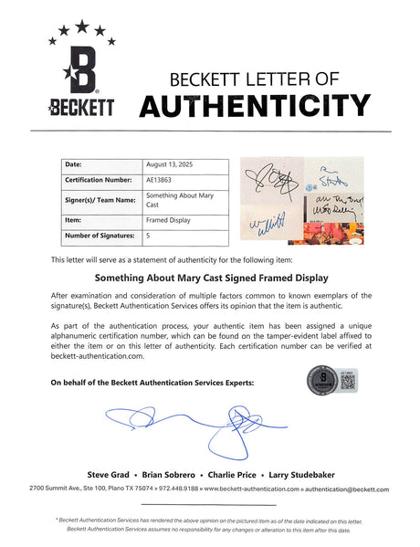 There's Something About Mary (5) Stiller, Diaz, Dillon Signed Framed Display BAS