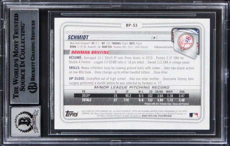 Very low stock (1 unit)$89Unit price /UnavailableRoyals Clarke Schmidt Signed 2020 Bowman PC #BP53 Card Auto 10! BAS Slabbed