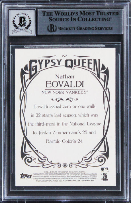 Yankees Nathan Eovaldi Signed 2015 Topps GQ #278 Card Auto 10! BAS Slabbed