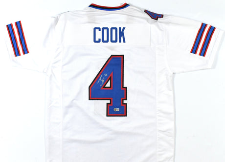James Cook Autographed White Pro Style Jersey - Beckett W Hologram *Silver
