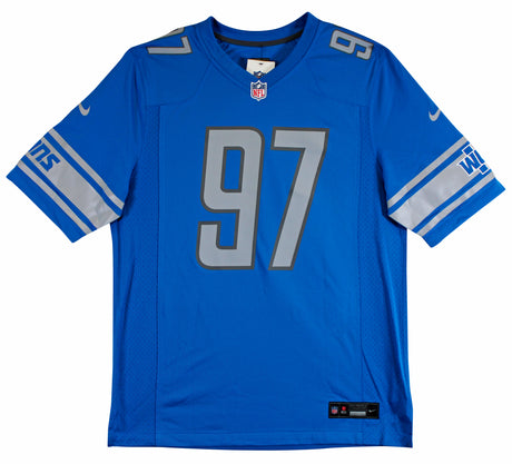 Lions Aidan Hutchinson Signed Blue Nike Game Jersey w/ Silver Sig BAS Witnessed