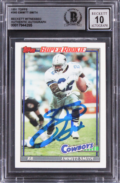 Cowboys Emmitt Smith Authentic Signed 1991 Topps #360 Card Auto 10! BAS Slabbed