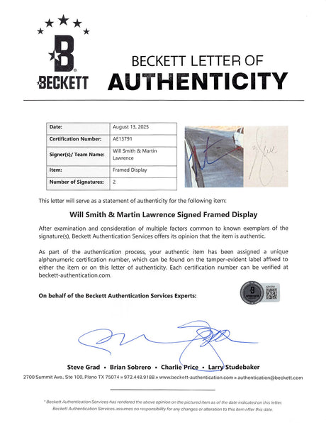 Will Smith & Martin Lawrence Bad Boys Signed Framed Display BAS #AE13791