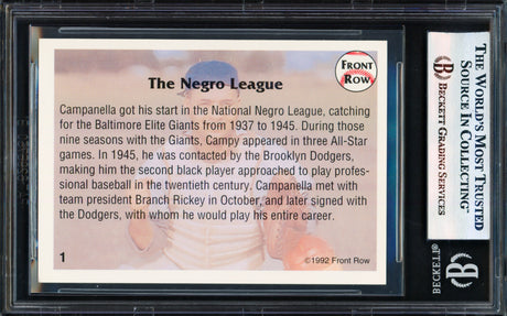 Roy Campanella Autographed 1992 Front Row Card #1 Brooklyn Dodgers Beckett BAS #17856379
