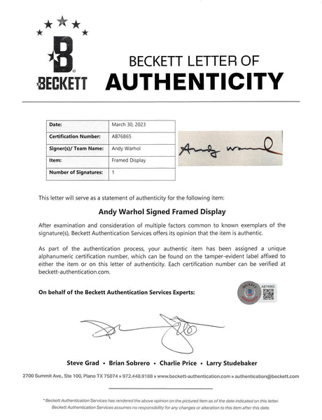 Andy Warhol Authentic Signed & Framed 2.5x7.5 Cut Signature BAS #AB76865
