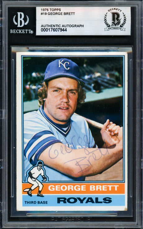 George Brett Autographed 1976 Topps Card #19 Kansas City Royals Beckett BAS #17607944