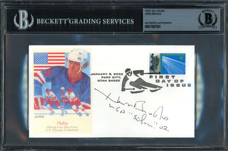 Herb Brooks Autographed First Day Cover 1980 Team USA Miracle on Ice Beckett BAS #17607593