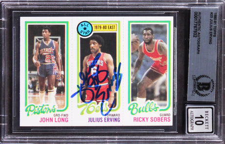 76ers Julius Erving Signed 1980 Topps #23 Card Auto Gem Mint 10! BAS Slabbed