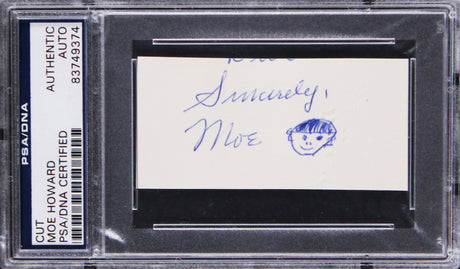 Moe Howard Signed 1.5x3.25 Cut w/ Hand Drawn Self Portrait Sketch PSA Slabbed