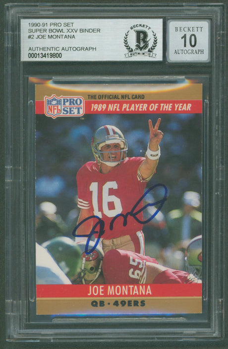 49ers Joe Montana Signed 1990 Pro Set SB XXV Binder #2 Card Auto 10! BAS Slabbed